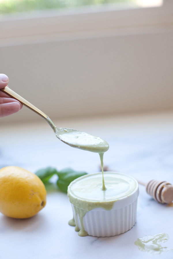 The Creamy, Lemon, Basil Dressing I’m obsessed with. Ha. What’s in it?
