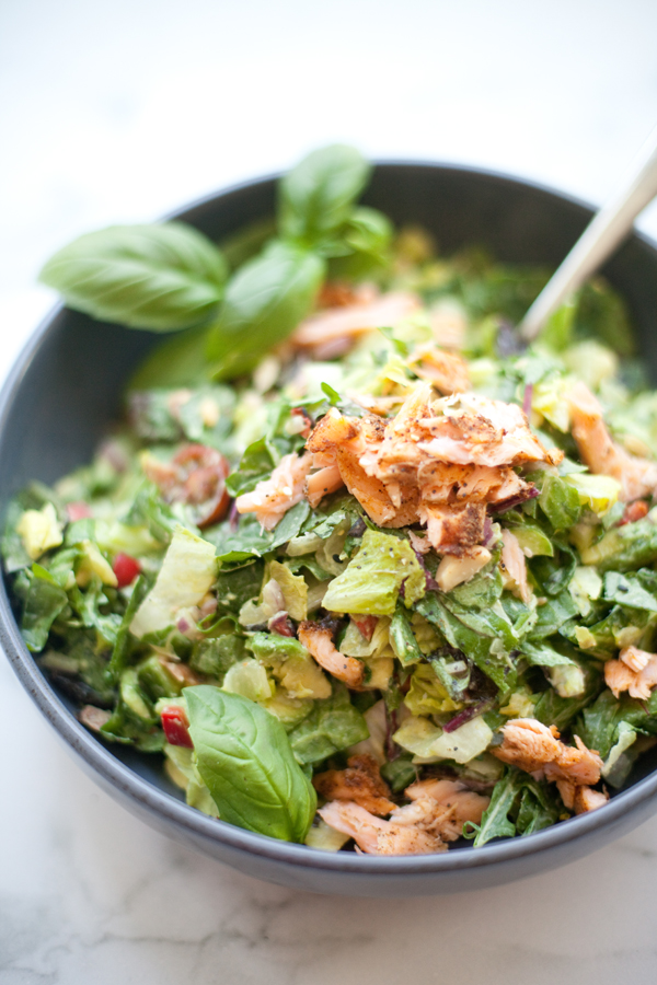 A good Cobb salad will ALWAYS have my heart. So classic and satisfying. Add this creamy, lemon, basil, buttermilk dressing, and the knowledge that it’s got all the flavors of your favorite Cobb for great macros?? It’s a NO BRAINER.