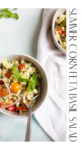 - In a large bowl, combine corn, cucumbers, cherry tomatoes, red onion, avocado, feta, and basil.