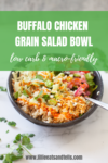 Here’s another recipe with one of my favorites– creamy buffalo chicken. I can’t stop building meals out of this stuff– because it makes EVERYTHING amazing. This easy buffalo chicken grain salad is no exception.