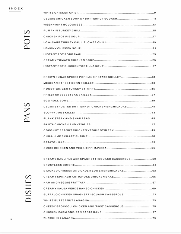 In POTS you’ll see all of the soups and chilis you need to get you through the Fall and Winter, along with a DELICIOUS but simple, staple weeknight bolognese and pork ragu to serve over pasta or a lower carb option like spaghetti squash. Family favorites all winter over here! All of the meals in this section are PERFECT for prepping ahead, freezing, or taking to a friend.
