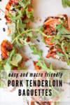 A crunchy crusty baguette topped with just about anything is delicious, but these Pear, Blue cheese, and Pork Baguettes are divine. You can prepare my brown sugar spiced pork tenderloin in advance (it’s a weekly staple over here and freezes great!), and whip these delish baguettes up for a macro friendly lunch or easy dinner. They’d also make a great crowd pleasing appetizer for your next dinner party.