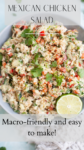 This Quick Mexican Chicken Salad comes together so fast, which makes it great for an easy lunch or even mid-afternoon snack. It’s high in protein and packed with veggies (which of course means it’s great for your macros), so you can feel good eating it any time of the day!