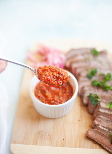 This quick Romesco sauce is going to become your new go-to sauce. It’s great on salads and meat, or even as a dip for your favorite crudité!