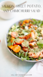 If you’ve already made your sweet potatoes, sweet chili salmon, and chimichurri sauce, (ahem, last night’s dinner) then this salad comes together really fast! You’ll just need a few more ingredients: